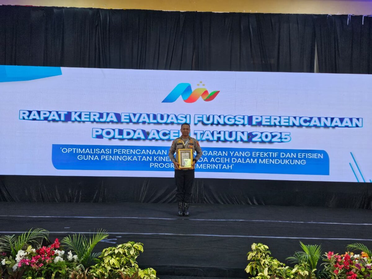 Piagam penghargaan dari Kepala Kepolisian Daerah (Kapolda) Aceh, Irjen Pol. Drs. Marzuki Ali Basyah, M.M., tersebut diserahkan Wakapolda Aceh Brigjen Pol Ari Wahyu Widodo kepada Kabag Ren Polres Lhokseumawe, Kompol M. Anwar, S.H dalam kegiatan Rapat Kerjal Evaluasi Fungsi Perencanaan Polda Aceh Tahun 2025, yang berlangsung di Mapolda Aceh, Kamis (25/9/2025) pagi.