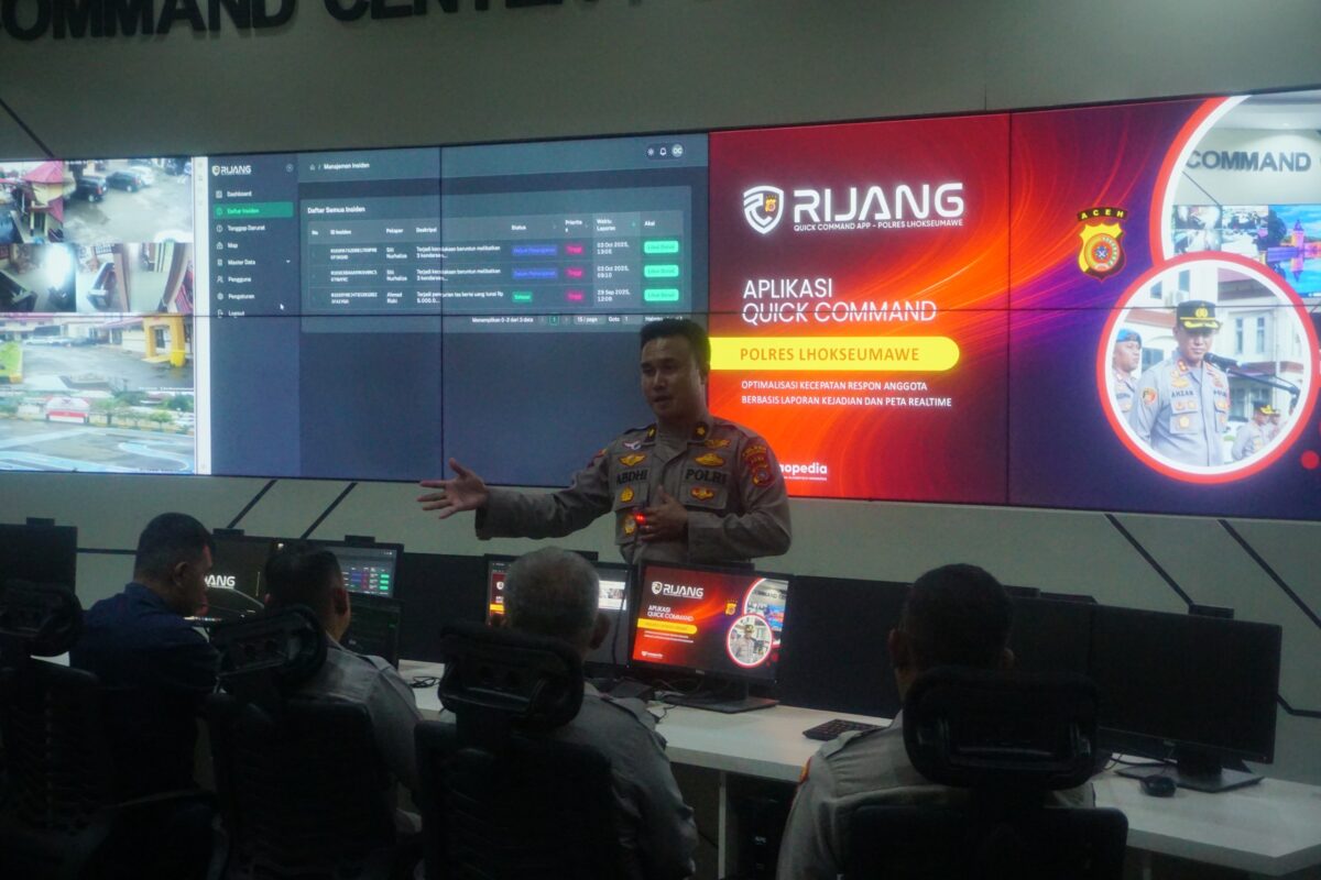Lhokseumawe – Polres Lhokseumawe melaksanakan kegiatan sosialisasi dan pelatihan penggunaan aplikasi Rijang Quick Command kepada personel di Ruang Command Center Polres Lhokseumawe, Jumat siang (3/10/2025).