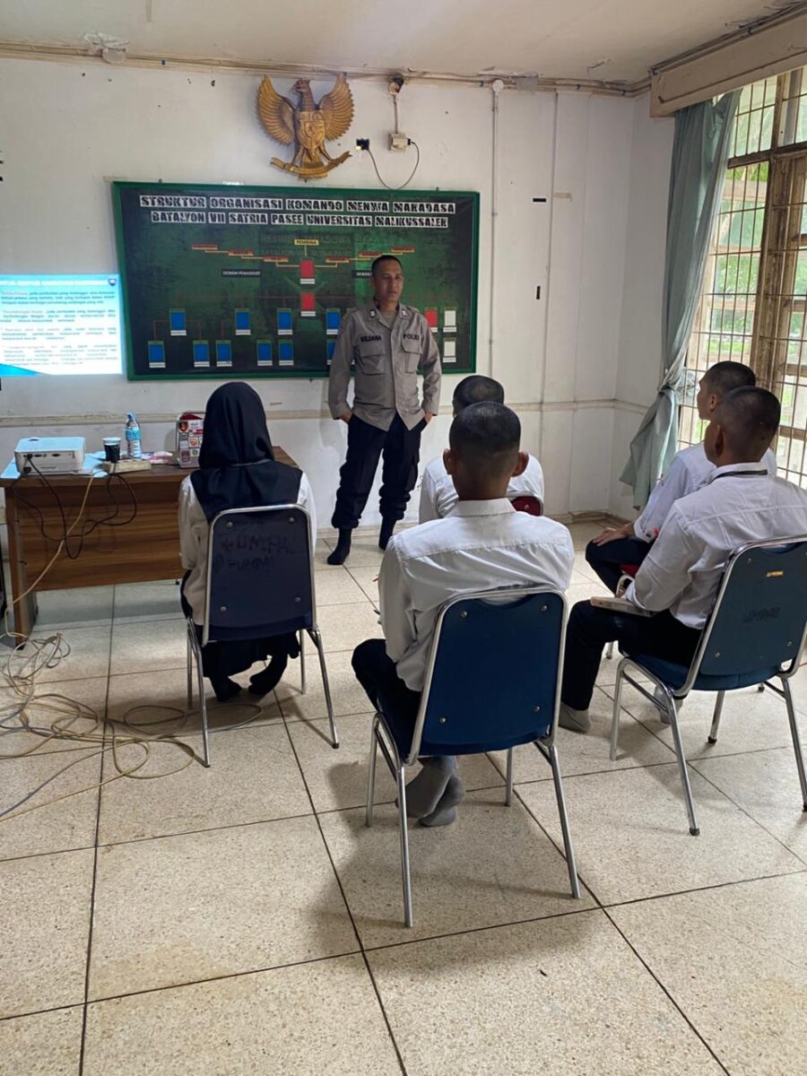 Kanit Binkamsa Satbinmas Polres Lhokseumawe Aiptu Wildan hadir sebagai narasumber dalam kegiatan pembekalan keamanan dan ketertiban masyarakat bagi Calon Menwa (Camen) Universitas Malikussaleh tahun 2025.