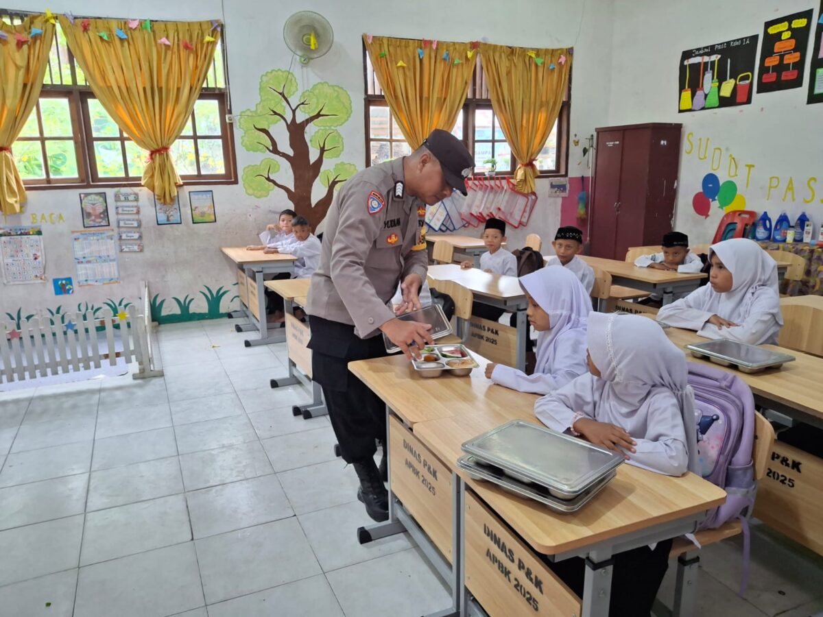 LHOKSEUMAWE – Personel Polsek Muara Dua melakukan monitoring pelaksanaan Program Makan Bergizi Gratis (MBG) dari Badan Gizi Nasional (BGN) yang dibagikan kepada para siswa sekolah serta kelompok B3 (balita, ibu hamil, dan ibu menyusui) di wilayah Kecamatan Muara Dua, Jumat (21/11/2025).