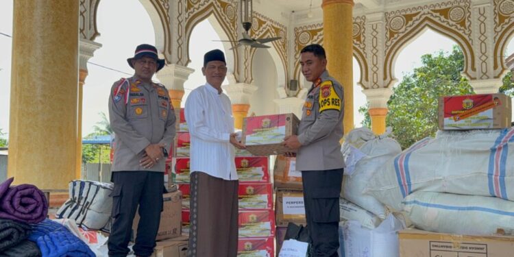 Lhokseumawe – Kapolres Lhokseumawe, AKBP Dr. Ahzan, S.H., S.I.K., M.S.M., M.H., menyalurkan bantuan sosial dari Alumni Akpol ’91 dan BD’S Wife kepada Dayah Darul Muttaqin yang dipimpin Tgk Muzakir atau Waled Lapang di Kecamatan Lapang, Kabupaten Aceh Utara, Kamis pagi (11/12/2025).