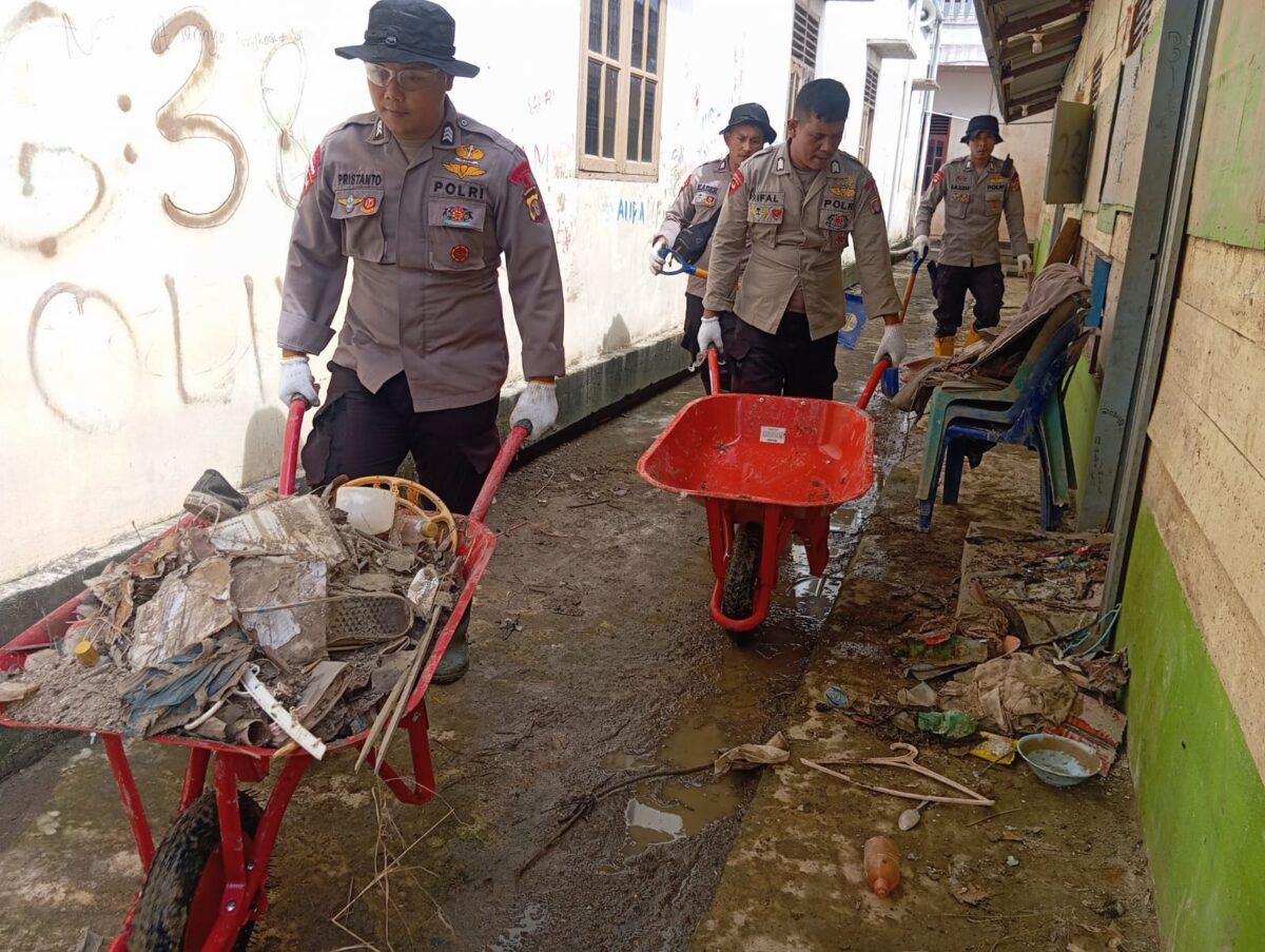 “Kami bersama personel Brimob melaksanakan pembersihan di Dayah Terpadu Al-Madinatuddiniyah Syamsuddhuha sebagai bagian dari misi kemanusiaan Polri pascabencana banjir. Dayah merupakan pusat pendidikan dan pembinaan akhlak, sehingga perlu segera dipulihkan agar aktivitas para santri dapat kembali berjalan normal,” ujar Wakapolres.