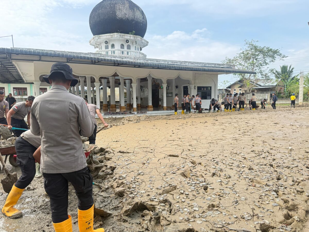 Kegiatan bakti sosial yang dimulai sekitar pukul 09.00 WIB tersebut dilakukan sebagai bentuk kepedulian Polri terhadap rumah ibadah yang terdampak banjir bandang pada 26 November 2025 lalu, sehingga tidak dapat digunakan untuk aktivitas ibadah akibat tertimbun lumpur dan sampah.