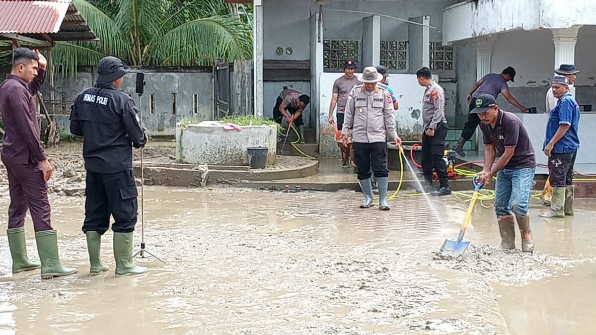 “Hari ini, 2 Januari 2026, kami dari Polres Lhokseumawe dibantu BKO Brimobda Kaltim bersama-sama membersihkan Masjid Syuhada yang terdampak banjir cukup parah. Ini adalah wujud kepedulian dan pengabdian kami kepada masyarakat, agar masjid kembali bersih dan dapat digunakan dengan nyaman untuk beribadah, terlebih menjelang bulan suci Ramadhan,” ujar Kapolres.