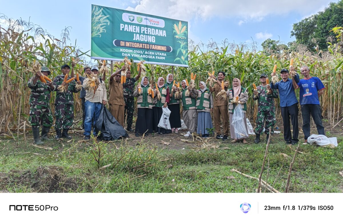 Perkuat Ketahanan Pangan, Vinca Farm dan Kodim 0103/Aut Panen Perdana Jagung Pipil di Lhokseumawe