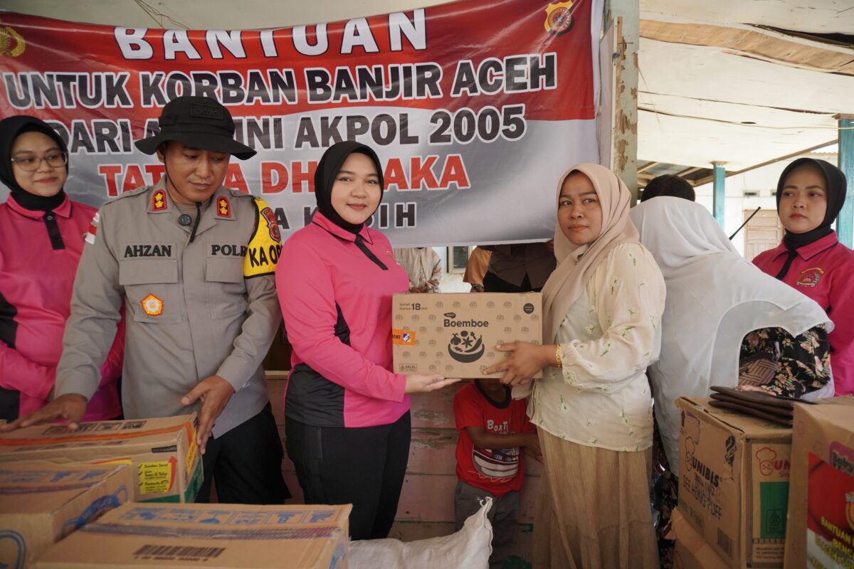 Kapolres Lhokseumawe dan Ketua Bhayangkari Serahkan Bantuan Alumni Akpol 2005 di Desa Ulee Blang Nisam