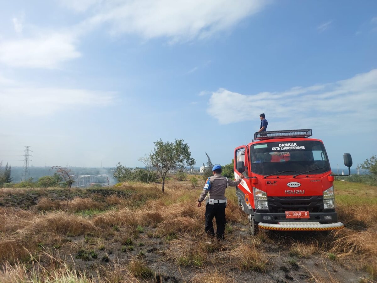 Mendapatkan laporan tersebut, personel Posko Karhutla Polsek Muara Satu bersama tim pemadam kebakaran Kota Lhokseumawe segera menuju lokasi kejadian. Sekitar pukul 14.25 WIB, petugas gabungan tiba di lokasi dan langsung melakukan upaya pemadaman.