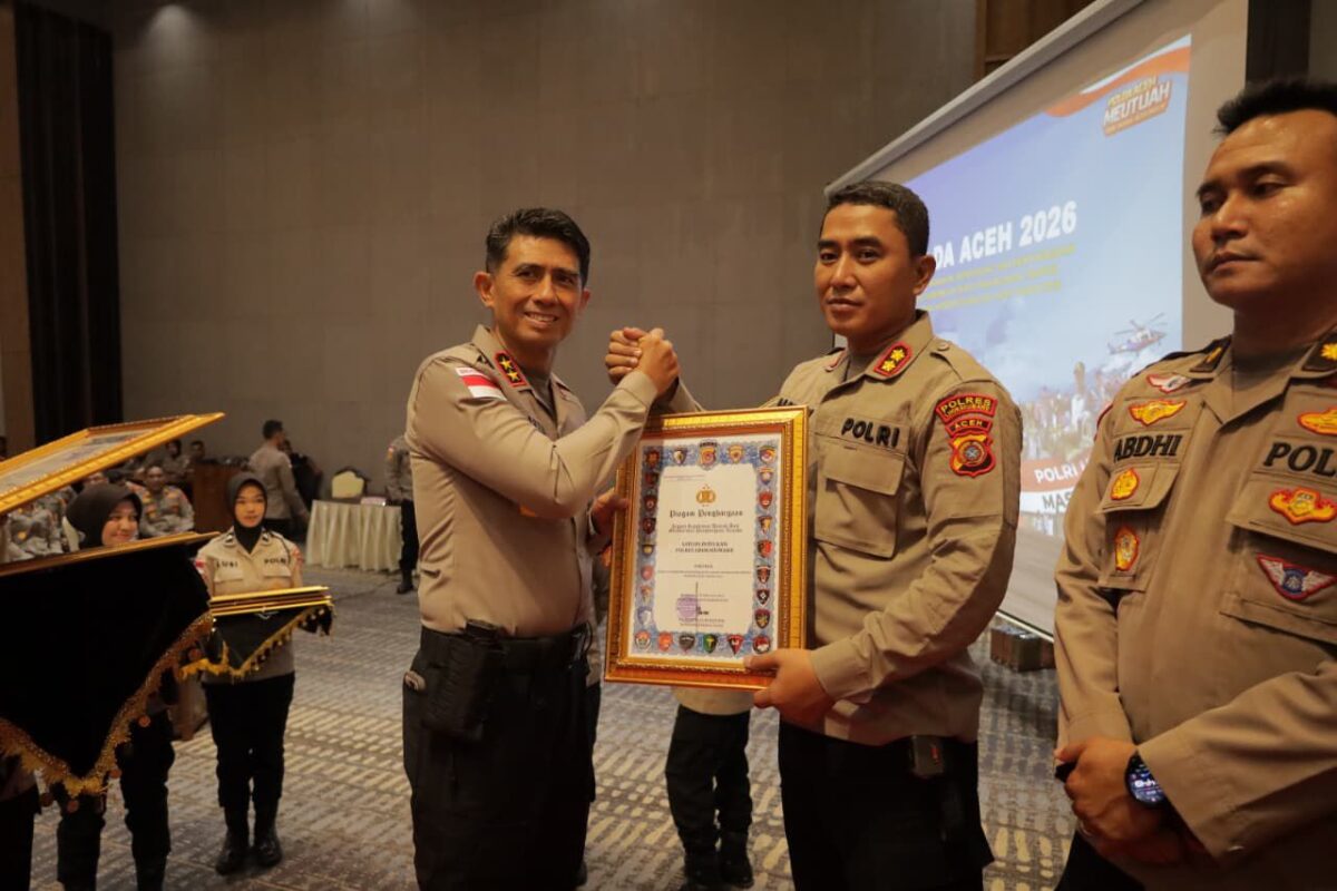 Aceh Besar – Polres Lhokseumawe dinobatkan sebagai peraih kategori Pelayanan Prima Terbaik dengan nilai A tertinggi di antara seluruh Polres se-Aceh. Prestasi membanggakan ini kembali ditorehkan Polres Lhokseumawe dalam Rapat Pimpinan (Rapim) jajaran Polda Aceh yang digelar di Hotel The Pade, Kabupaten Aceh Besar, Provinsi Aceh, Rabu (25/2/2026).