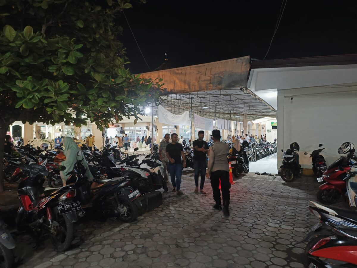 Lhokseumawe – Guna memastikan pelaksanaan ibadah Shalat Tarawih berjalan aman dan khusyuk, personel Polsek Banda Sakti Polres Lhokseumawe melaksanakan patroli dan pengamanan di sejumlah masjid dalam wilayah hukumnya, Senin (2/3/2026) malam.