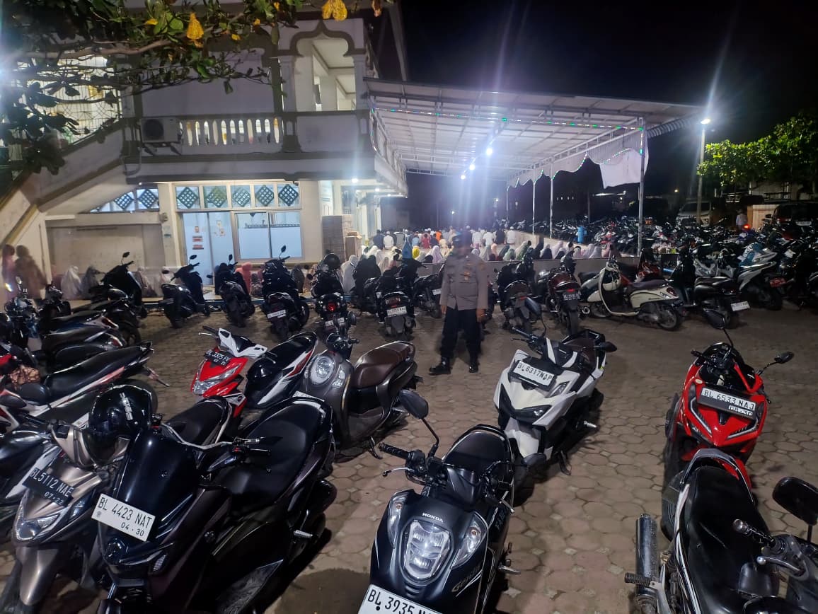 LHOKSEUMAWE – Dalam rangka menjaga keamanan dan ketertiban masyarakat (Harkamtibmas) selama bulan suci Ramadan, personel Polsek Muara Dua melaksanakan patroli dan pengamanan Shalat Tarawih di wilayah hukumnya, Rabu (4/3/2026) malam.