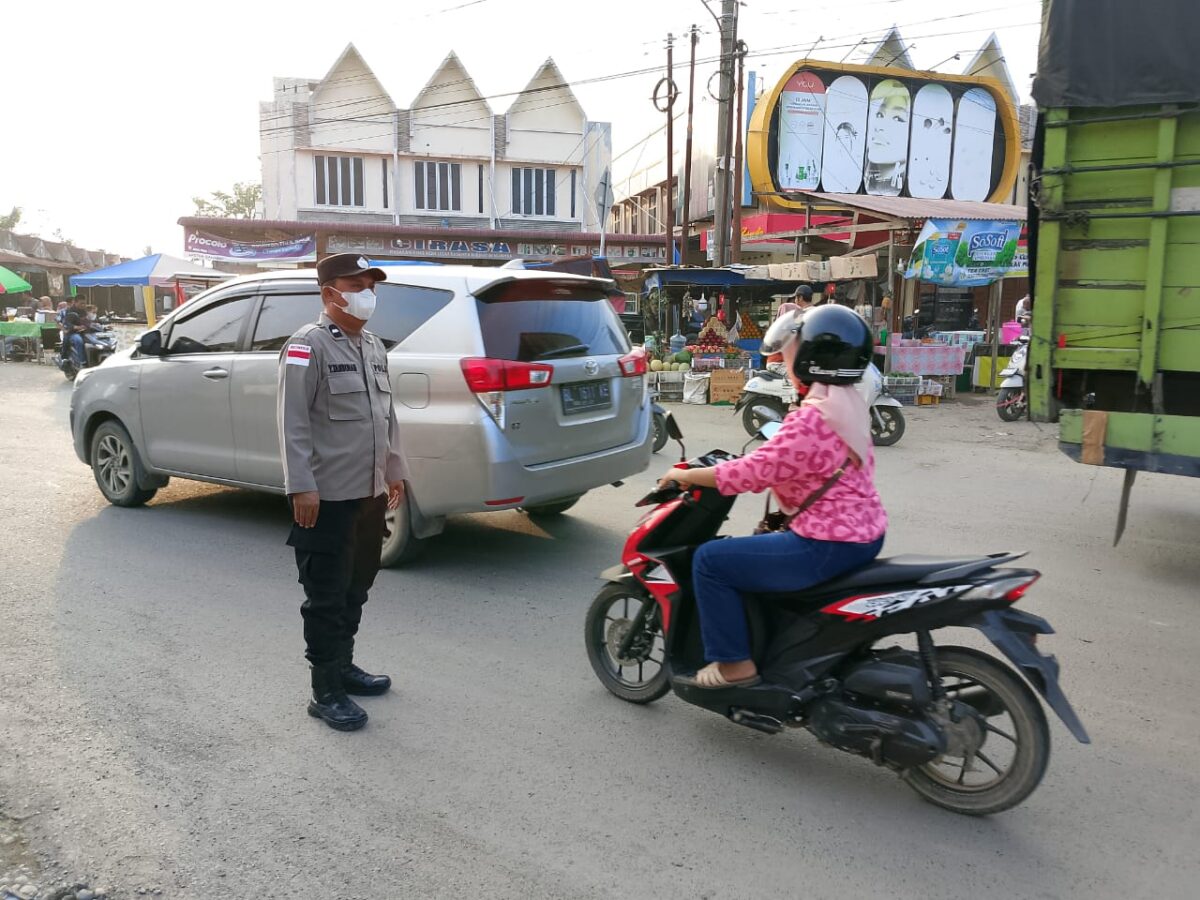 Mengantisipasi kepadatan arus kendaraan, personel Polsek Samudera melaksanakan kegiatan strong point berupa pengamanan dan pengaturan lalu lintas, Kamis (12/3/2026) sore.
