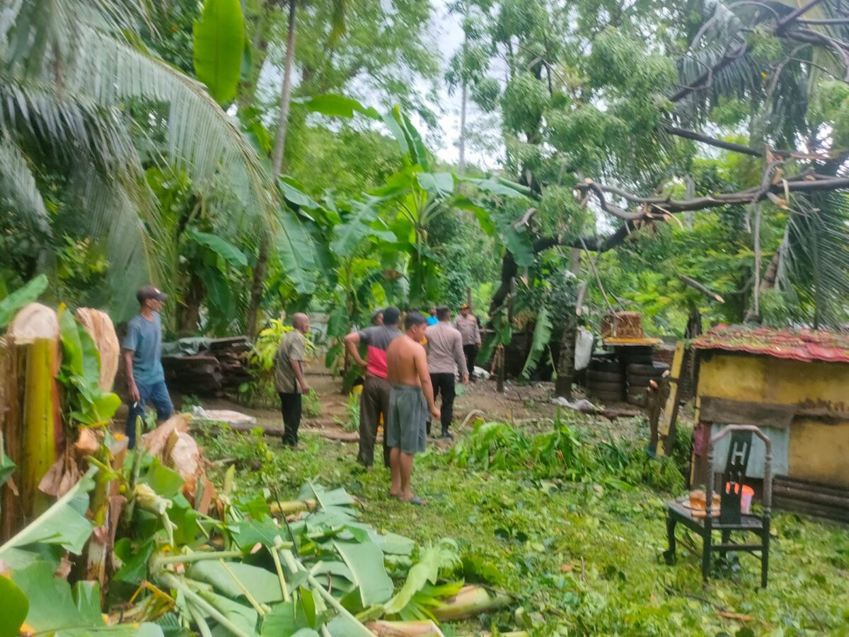 Polisi Cepat Tanggap, Evakuasi Pohon Tumbang yang Timpa Rumah Warga di Blang Panyang