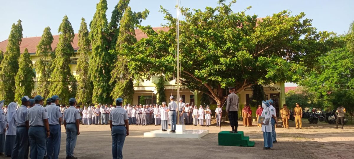 Lhokseumawe — Upaya pencegahan kenakalan remaja terus diperkuat melalui pendekatan edukatif. Salah satunya dilakukan Kapolsek Banda Sakti, AKP Hanafiah, S.Ag., M.M, saat menjadi pembina upacara bendera sekaligus memberikan sosialisasi tentang bahaya tawuran, balap liar dan penyalahgunaan narkoba di SMA Negeri 2 Lhokseumawe, Desa Mon Geudong, Kecamatan Banda Sakti, Senin (27/4/2026).